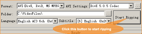- Clikc on the drop-down lists, and select your output format as "AVI (DivX,